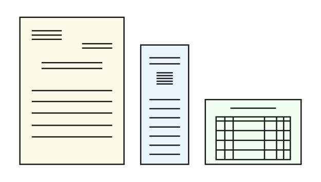 またサイズがバラバラな不定形サイズの帳票も、まとめて読み取り可能です。