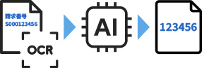 リコーの帳票解析技術と画像処理技術を搭載したAIが、事前の帳票定義を必要とせず請求書に記載された情報を自動認識し一括データ化します。