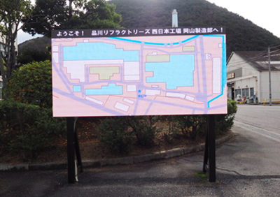 工場の敷地内に、外光に強く防水レベルの高いLEDビジョンを設置。社員向けには安全成績・安全啓蒙を、お客様向けには割り込み配信機能を利用し、ウェルカムボードとしてご活用されています。