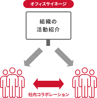 企業でのサイネージ活用事例をご紹介します。オフィスサイネージ導入により、情報共有の促進を図ることができます。