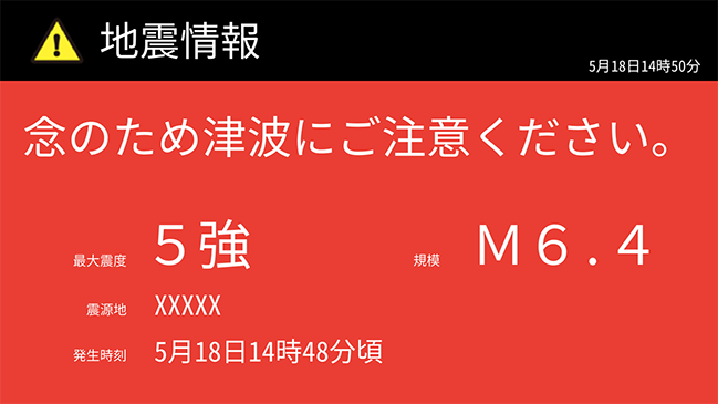 緊急災害コンテンツ(地震情報/津波情報/避難情報/その他緊急情報)を自動で配信します。
