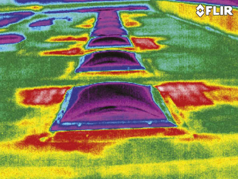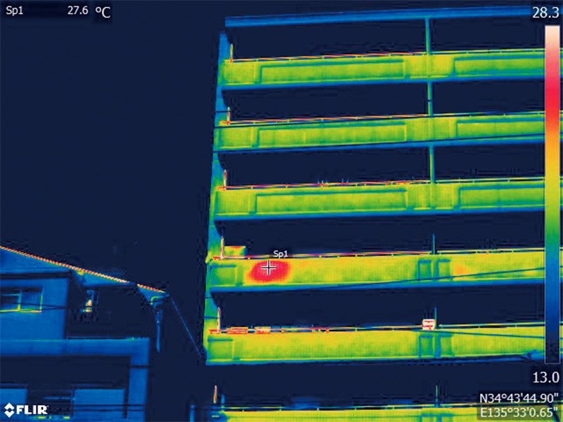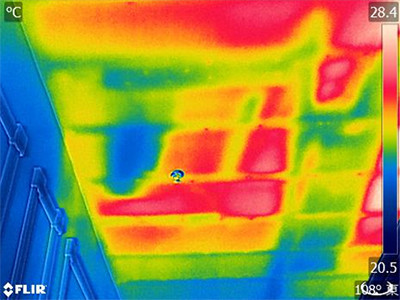 建物の断熱性能評価や雨漏り・水漏れの調査に活用されます。外壁や屋根の温度分布を可視化することで、断熱材の劣化や施工不良を特定し、省エネルギー対策や修繕計画の立案に役立ちます。
